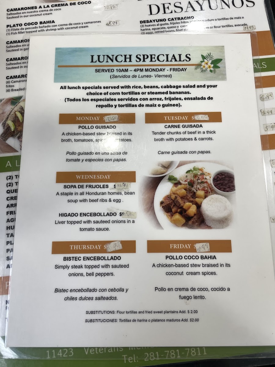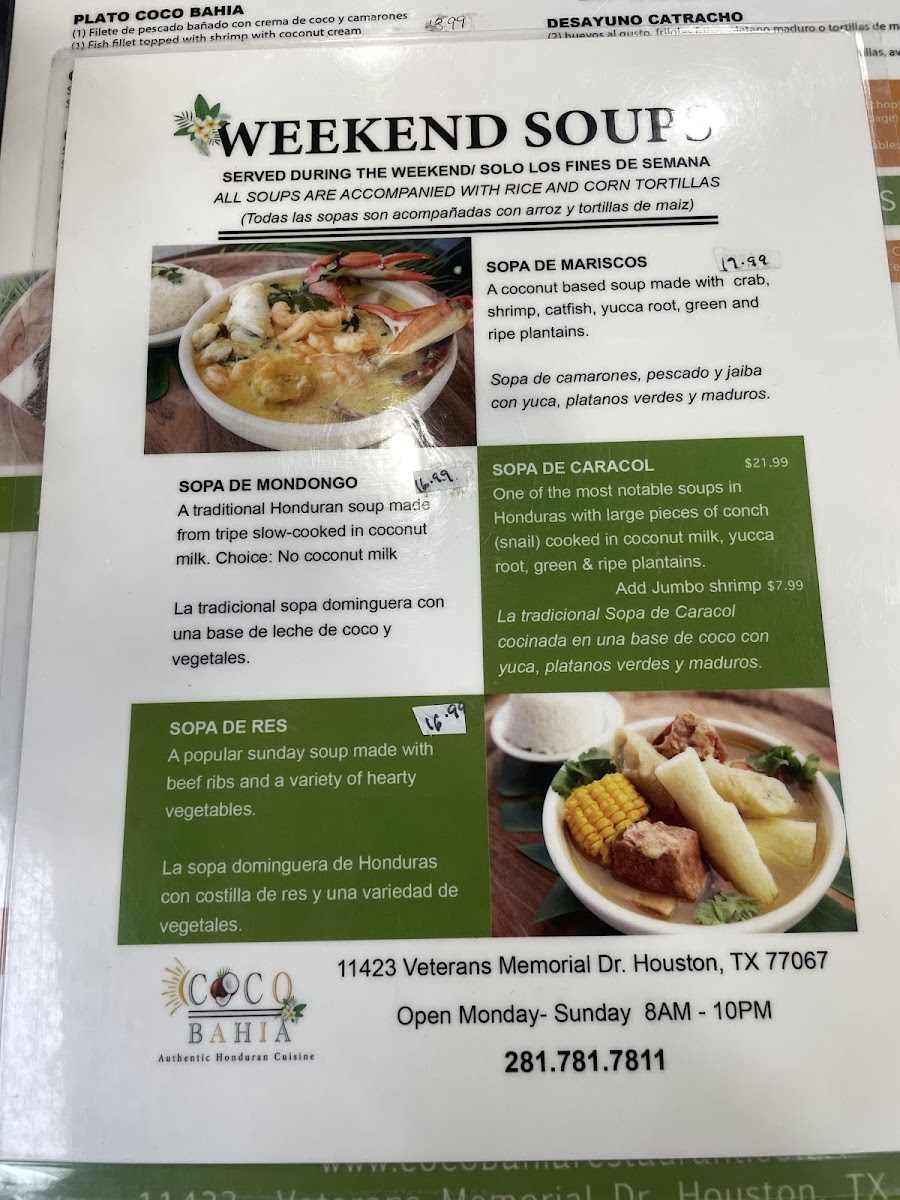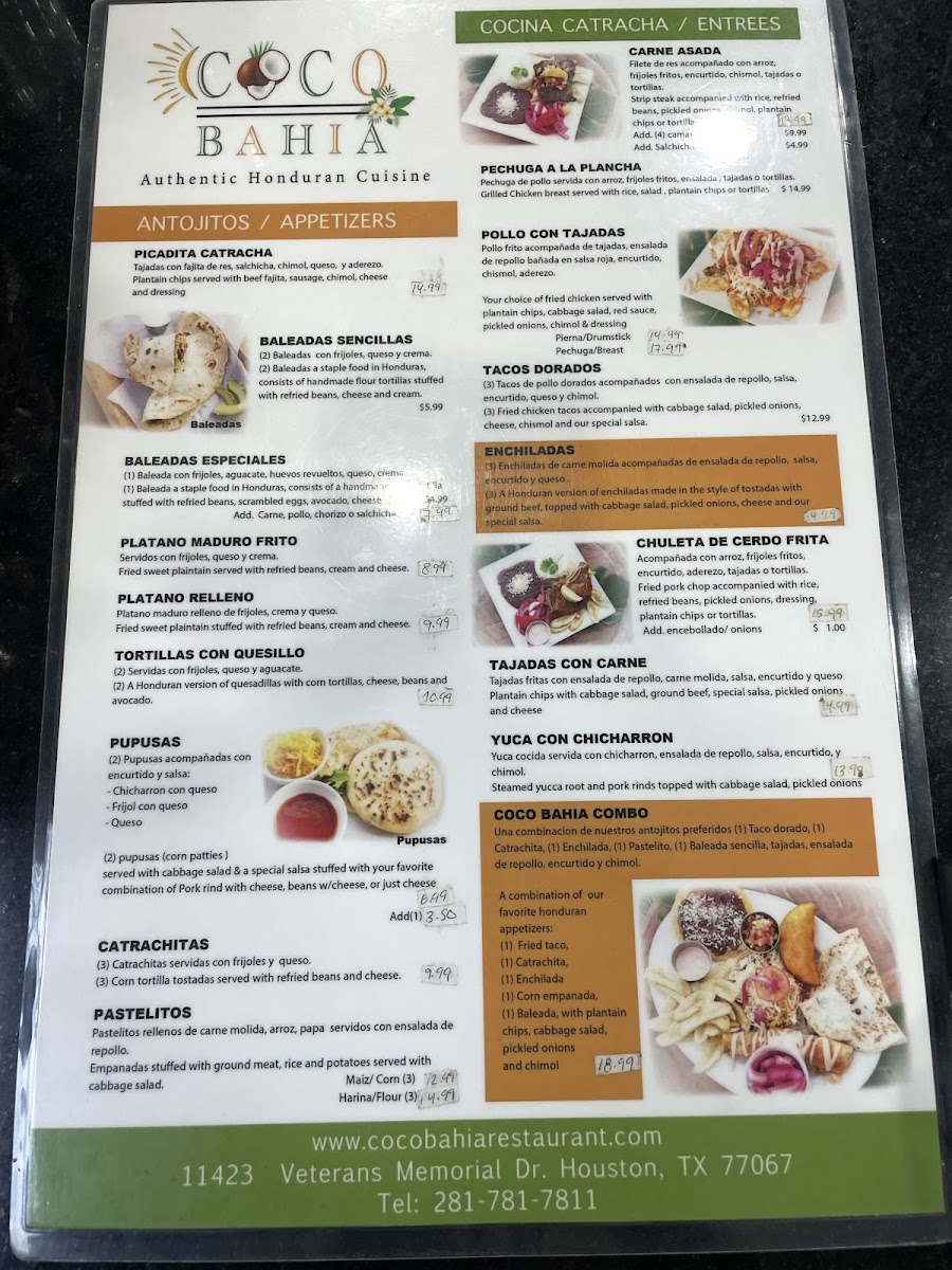 Welcome to Coco Bahia, a hidden gem located at 11423 Veterans Memorial Dr, Houston, TX. This vibrant restaurant specializes in authentic Honduran cuisine that promises to tantalize your taste buds. The moment you step inside, you're greeted with a warm atmosphere, complemented by uplifting worship music that adds to the dining experience.